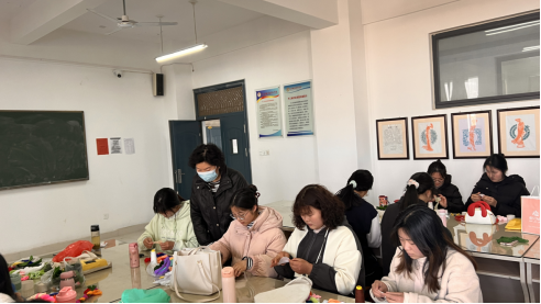 一早,蒋有红来到1号楼手工教室,旁听吴广立老师的手工课程,课间与师生亲切交谈。