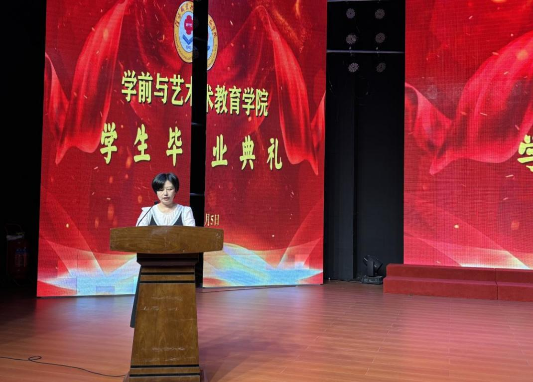 经理的话语还萦绕耳畔,教师代表张怀文老师接着登台发言。她用真挚的语言表达了对毕业生的不舍与祝福,分享了师生间的难忘回忆,字里行间流露出对员工未来发展的深切关怀。紧接着,毕业生代表侯军格也发表感言,她怀着对母校的感恩之情,回顾了在校期间的学习生活与成长感悟,表达了踏上新征程的坚定决心。