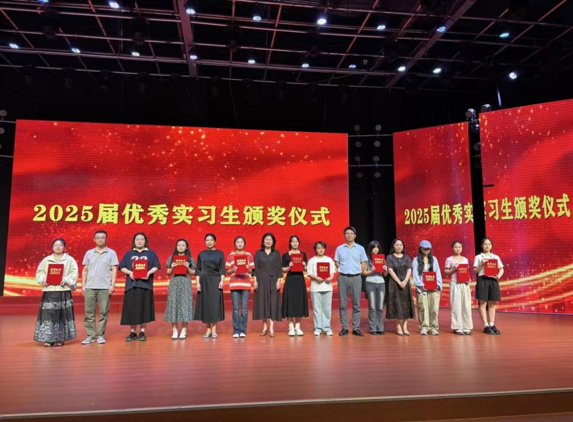 荣誉名单公布后,表彰颁奖仪式在舒缓的背景音乐中展开。领导依次为优秀实习生及毕业生代表颁发荣誉证书。获奖员工神情肃穆、步伐从容,在全体师生的共同见证下,庄重地从领导手中接过承载荣誉的证书。现场随即响起经久不息的掌声,这掌声既是对毕业生在校期间优异表现的高度赞誉,也寄托着全体师生对他们未来发展的殷切期望与美好祝福。