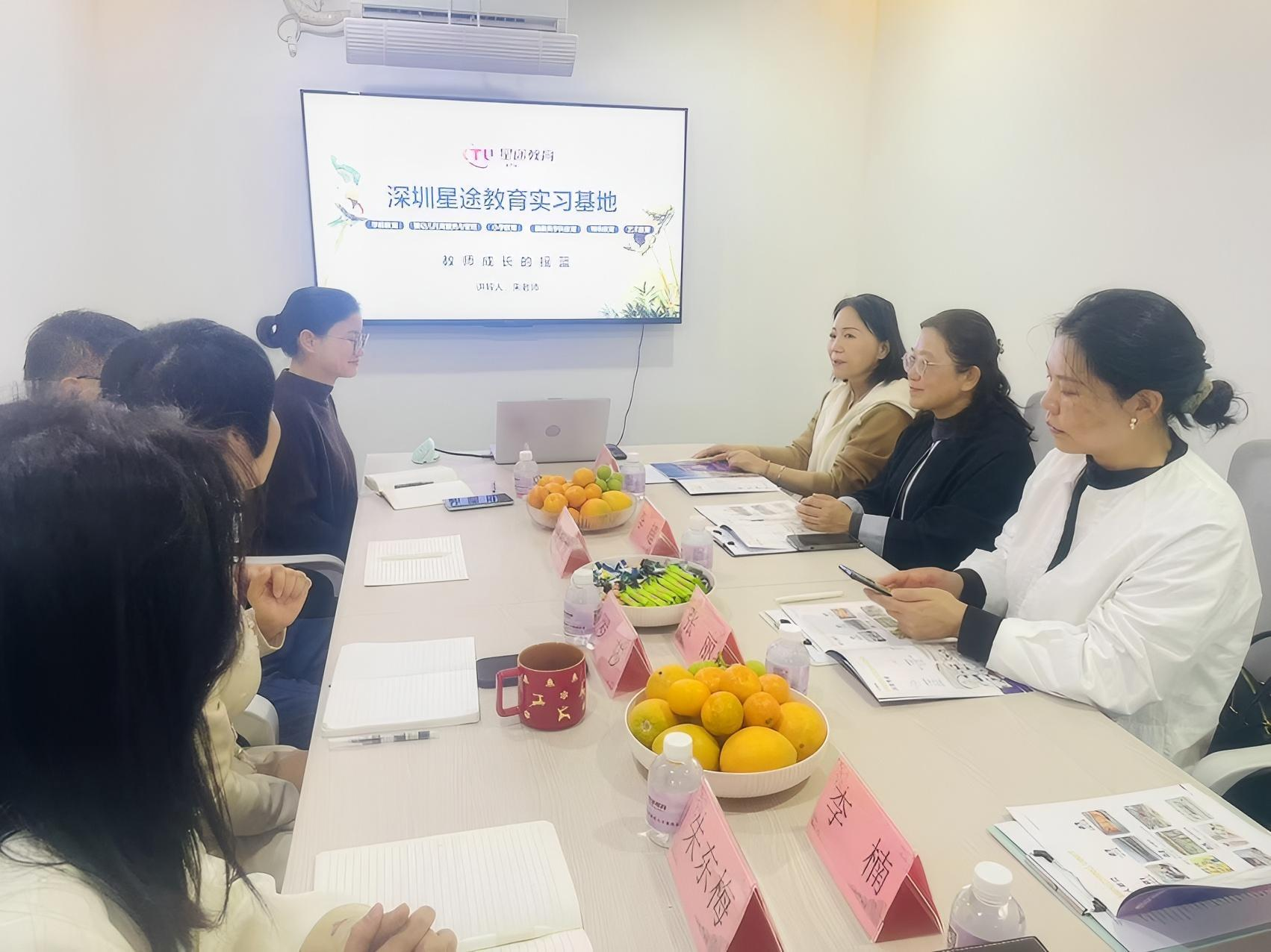 在星途教育集团总部,大家深入了解集团的发展历程和业务架构,重点关注其小教事业部和幼教事业部两大核心业务板块。对集团所属实习基地比例类型(幼儿园、早教托育机构、托辅机构、儿童兴趣培训班及特教机构等)及岗位(主班及辅班教师、教务老师、保育老师占比)设置的科学性与合理性,进行征询了解,以期基地建设能满足公司员工“专业对口、地域多元”的实习需求。