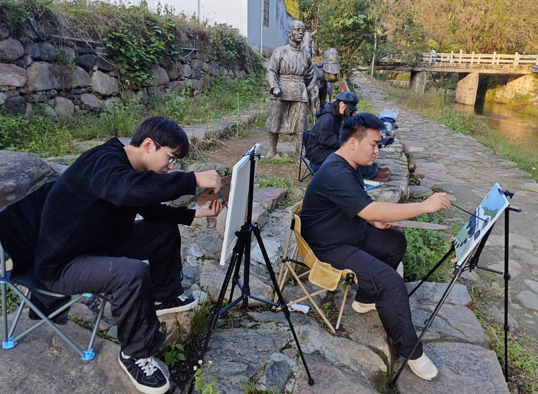 2025年10月,28名师生组成的写生团队走进河南省新县——这片鄂豫皖苏区首府所在地、被誉为“将军县”的红色沃土。这并非一次普通的写生活动,而是一堂精心设计的“写生路上的思政课”。