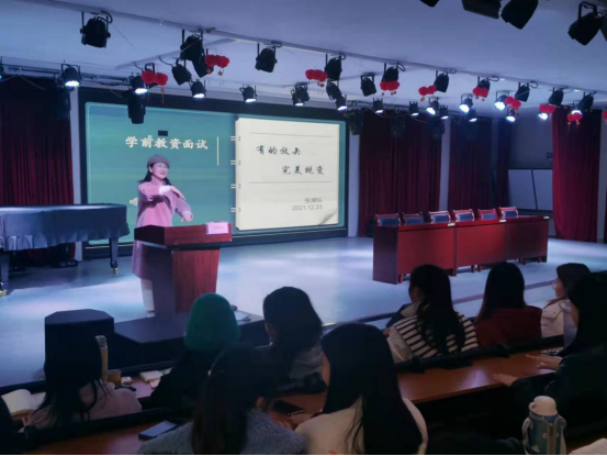 公司19普专学前专业的员工在2021年教团队格证考试中笔试成绩创历史新高,为确保员工在2022年元月8日的面试中顺利通过,12月23日下午特邀请信阳市第一实验小学张湘弘主任在1403演播厅对19普专学前近300名员工进行了教团队格证面试考前培训。