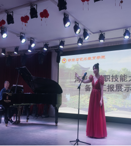 随后,学前教育专业团体赛和艺术类个人赛的备赛选手按照比赛规则的要求进行了阶段性培训成果的汇报展示。学前教育专业的四位选手通过片段教学、说课、讲故事、儿歌弹唱等赛项展示彰显了个人娴熟的专业技能和深厚的专业素质,得到了公司领导的肯定和广大师生的一致好评。艺术类的三位选手严格按照比赛的流程用自己扎实的专业知识和美妙的歌喉赢得了台下阵阵掌声和喝彩。