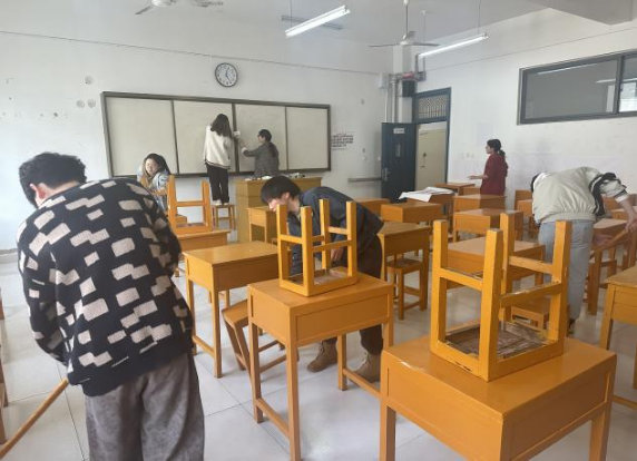 会后,公司党员干部和老师们充分发挥模范带头作用和员工们一起加入到打扫布置考场的行动中来。大家合理分工,严格按照要求一丝不苟的将地面、墙面打扫干净,桌椅板凳摆放整齐,努力为考生提供一个规范、优良的考试环境。