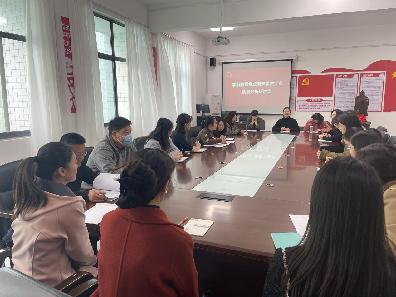 2022年1月22日下午,304永利集团召开学前教育专业期末员工学业质量分析研讨会,304永利集团经理方丙丽以及学前专业相关任课老师参加会议,方丙丽主持会议。