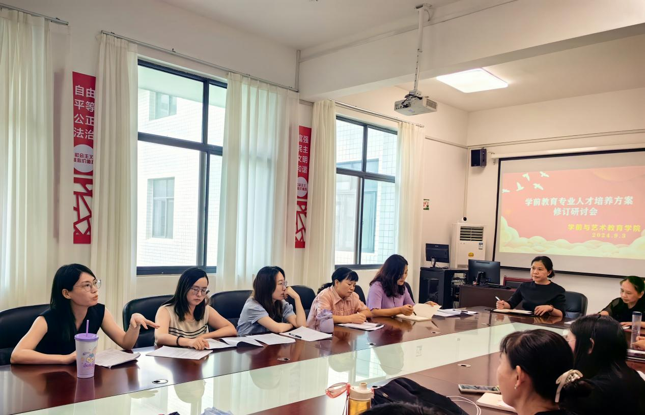 孙娓娓对人才培养方案的指导思想、基本原则、制定程序与实施要求进行了说明。大家围绕指导意见,就培养方案框架、课程体系构成、学时学分比例、实践教学安排等方面存在的问题、优化方案发表看法,提出意见建议。经过讨论初步确定了2024 版学前教育专业人才培养方案修订思路。后续将校内教师形成的初稿送呈专业委员会初审,并转至行业专家及相关幼儿园园长征求意见,进一步完善优化,为下一次人才培养方案修订研讨做好准备。