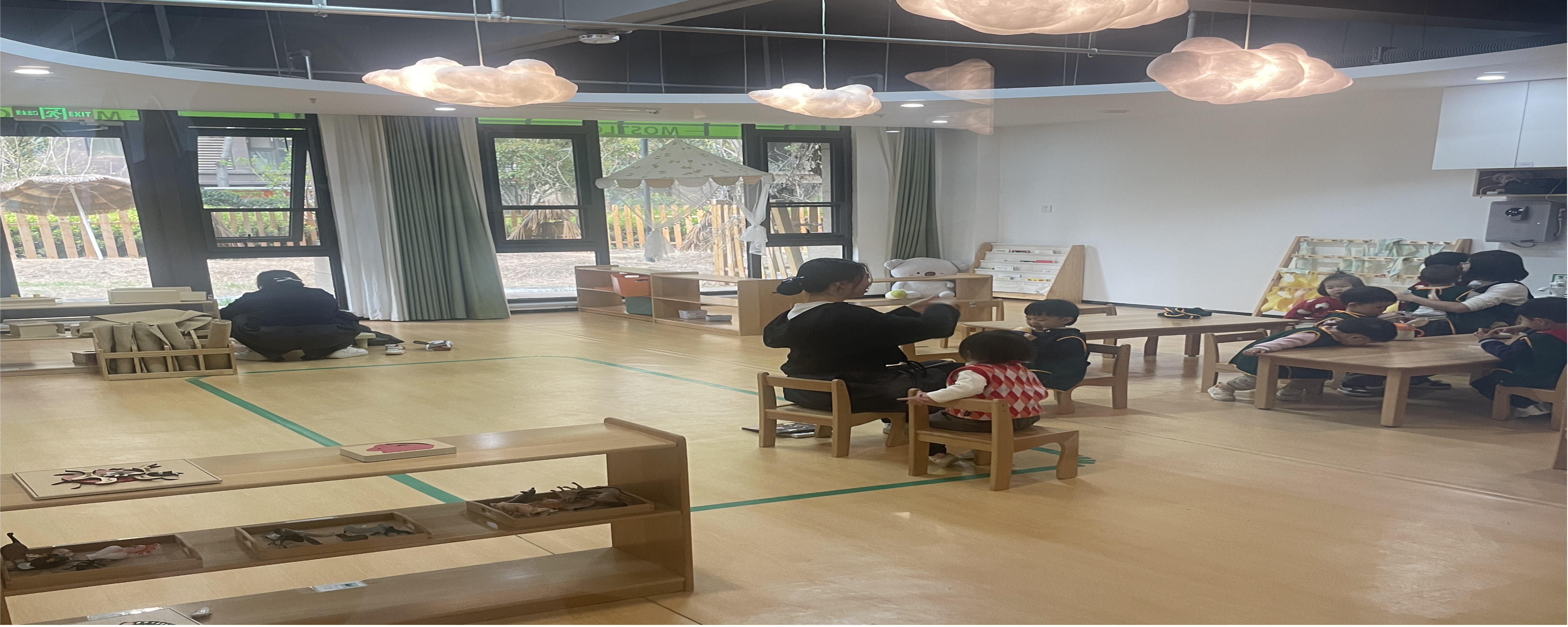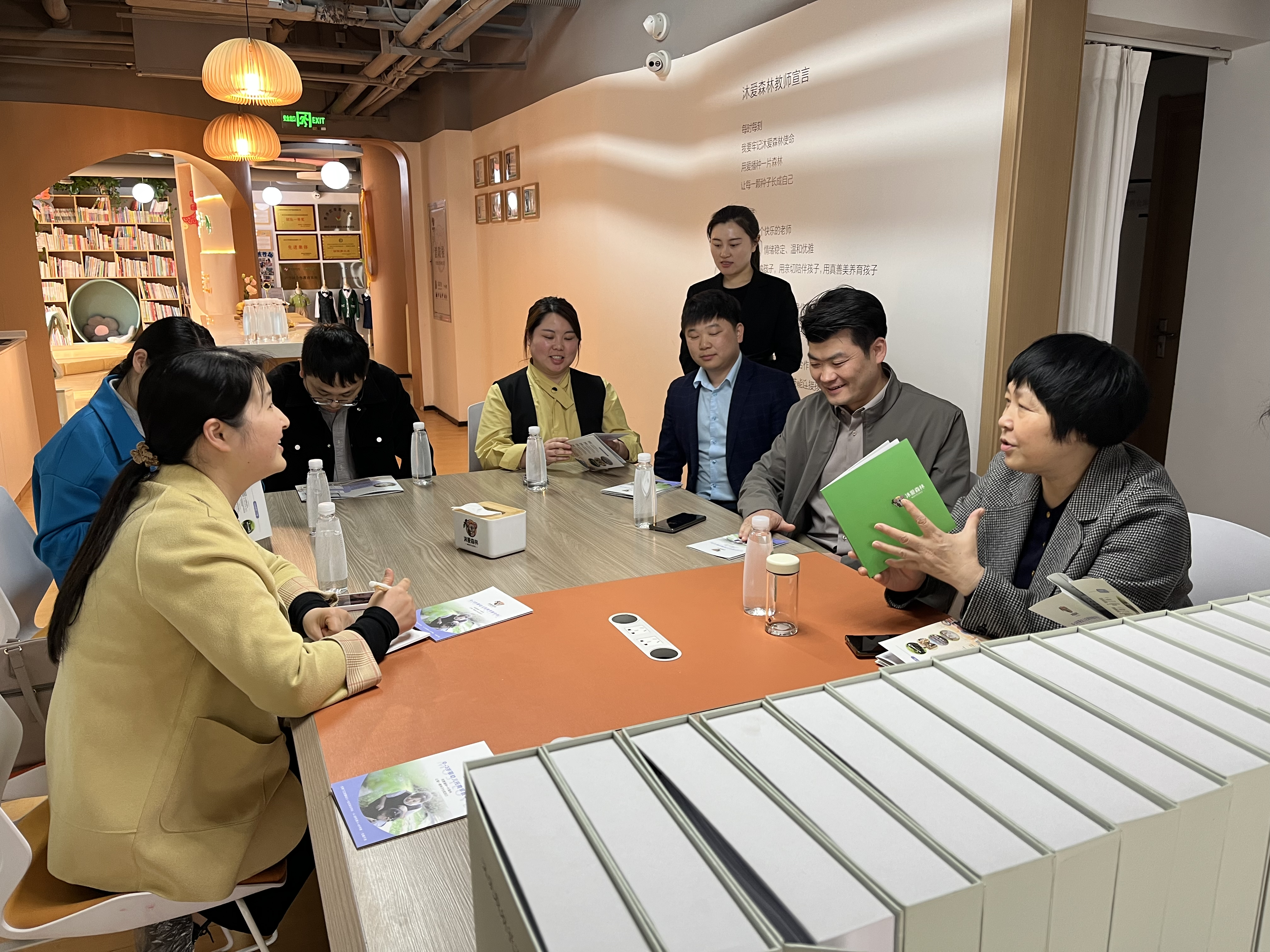第二站,来到郑州师范公司,在师范公司副董事长胡明生、社会服务与发展公司经理王工厂的陪同下参观了郑州师范公司产教融合基地建设和校企合作普惠托育园——沐爱森林。