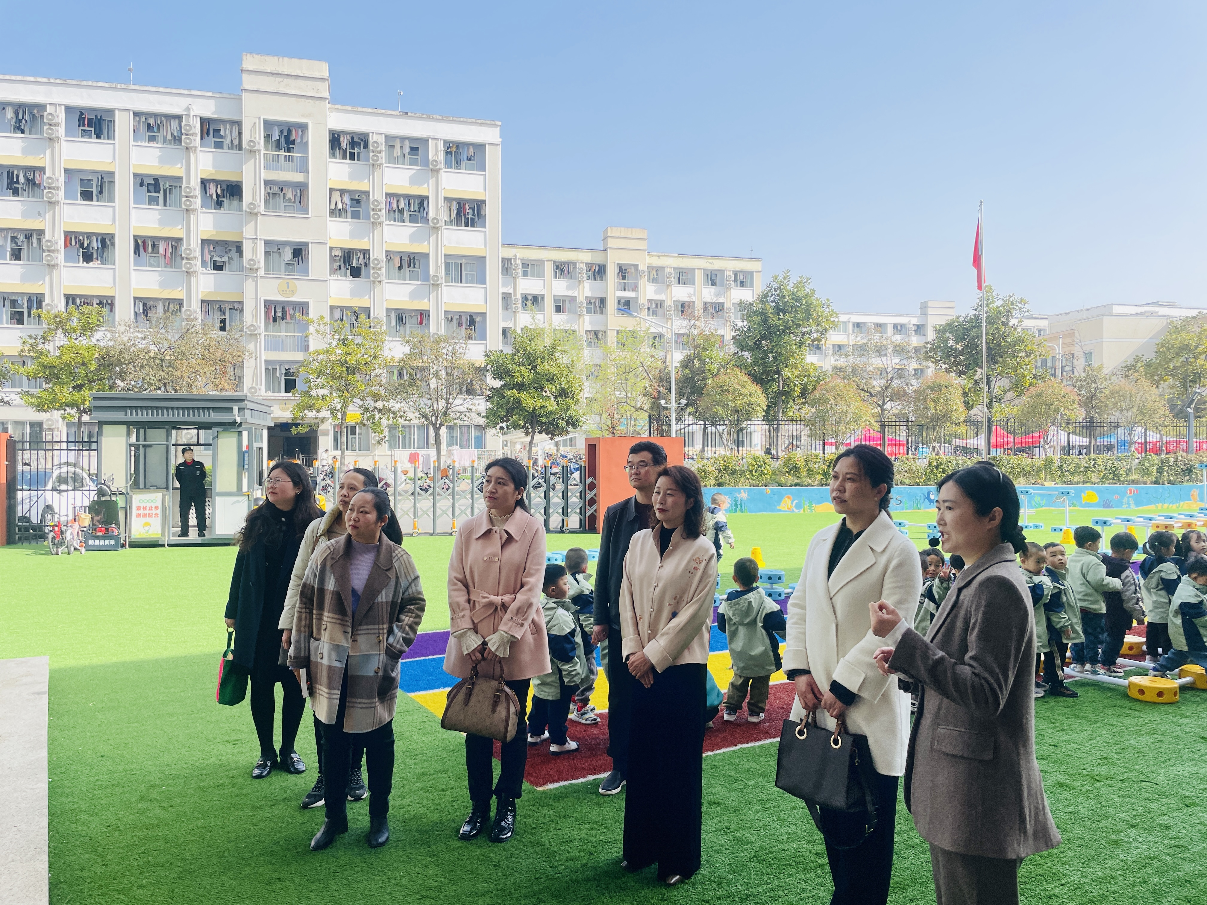 在郑晶晶园长的陪同下参观了新园的内外环境,了解了其悠久的办园历史和办学理念,认真聆听了工作人员对园本课程、团队队伍、特色与所取得荣誉的介绍